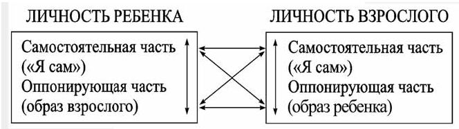 С помощью воли ребенок удерживает взаимодействие с каждой частью личности. Если это не удается, возникает конфликтная ситуация: приходится подавлять либо свои желания, либо желания взрослого, изменять представления о взрослом и о себе. Осуществление ребенком двойственного поведения является попыткой избежать конфликтного взаимодействия и достичь собственной цели.