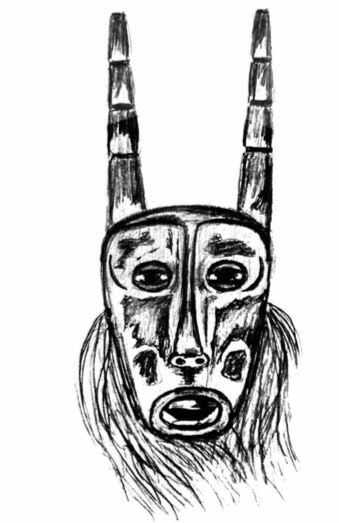 На следующий день в мастерской, которая была полна столярного инструмента, я увидела маски разложенными на верстаке – всего семь штук. Помимо обычных плоских масок, здесь были и объемные, в виде человеческих голов. Их носят на макушке, прикрепив к тряпичному наголовнику, закрывающему лицо. Вся коллекция производила страшноватое впечатление. Маски будто смотрели мне прямо в душу и видели то, чего я и сама о себе не знаю. Чтобы не перегружать мозг прямо на старте, я выбрала для начала самую на вид примитивную маску – Коба сказал, что писать можно в любом порядке.