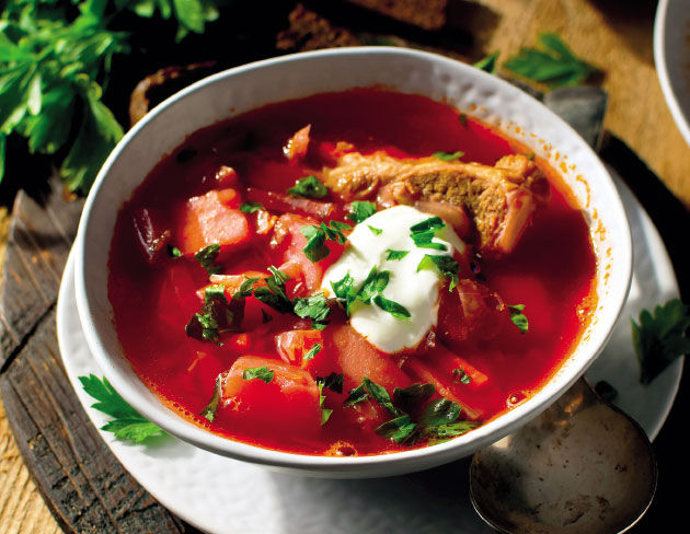 5. После окончания варки снять с огня и дать настояться 10–15 минут. Подать борщ, украсив зеленью и добавив сметану. По желанию – подать с чесночными булочками или ржаным хлебом.